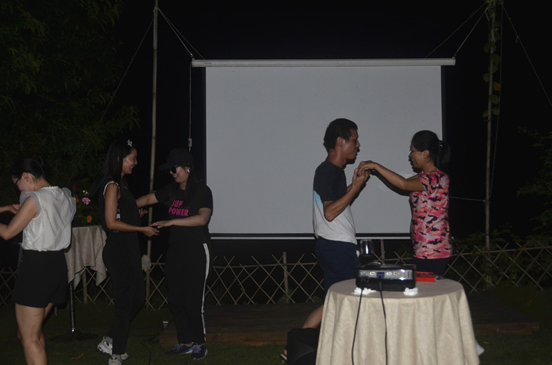 隨后,即興表演的節(jié)目也相當(dāng)豐富,大家紛紛自告奮勇上臺(tái)表演,有跳邁克杰克遜舞步的,有跳機(jī)械舞的,有跳恰恰舞的,有唱歌的,有朗誦詩詞的,有講笑話的,有發(fā)表個(gè)人感想的......大家在載歌載舞、推心置腹交流中結(jié)束了團(tuán)建活動(dòng)的最后一個(gè)環(huán)節(jié)!
