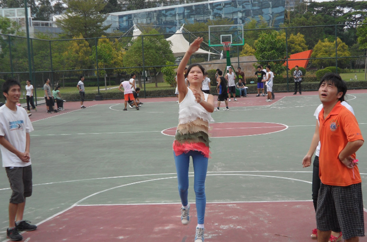 當然,比賽當日,身為本報的記者的偶也沒閑著。雖然由于水平原因沒有參加比賽,但搬比賽用具、布置比賽場地、拍照。。。忙的也是不亦樂乎。到達比賽場地時正好是11點,只見此時藍天如洗,驕陽似火,大家都為這毒辣的太陽可能影響比賽擔(dān)心著,幸好天公作美,到下午比賽開始時已有微風(fēng),加上白云漸增,陽光威力驟減??粗矍盁狒[的人群和認真訓(xùn)練的隊員們,心想著這必須是一屆給力、圓滿的籃球賽?。?/span>