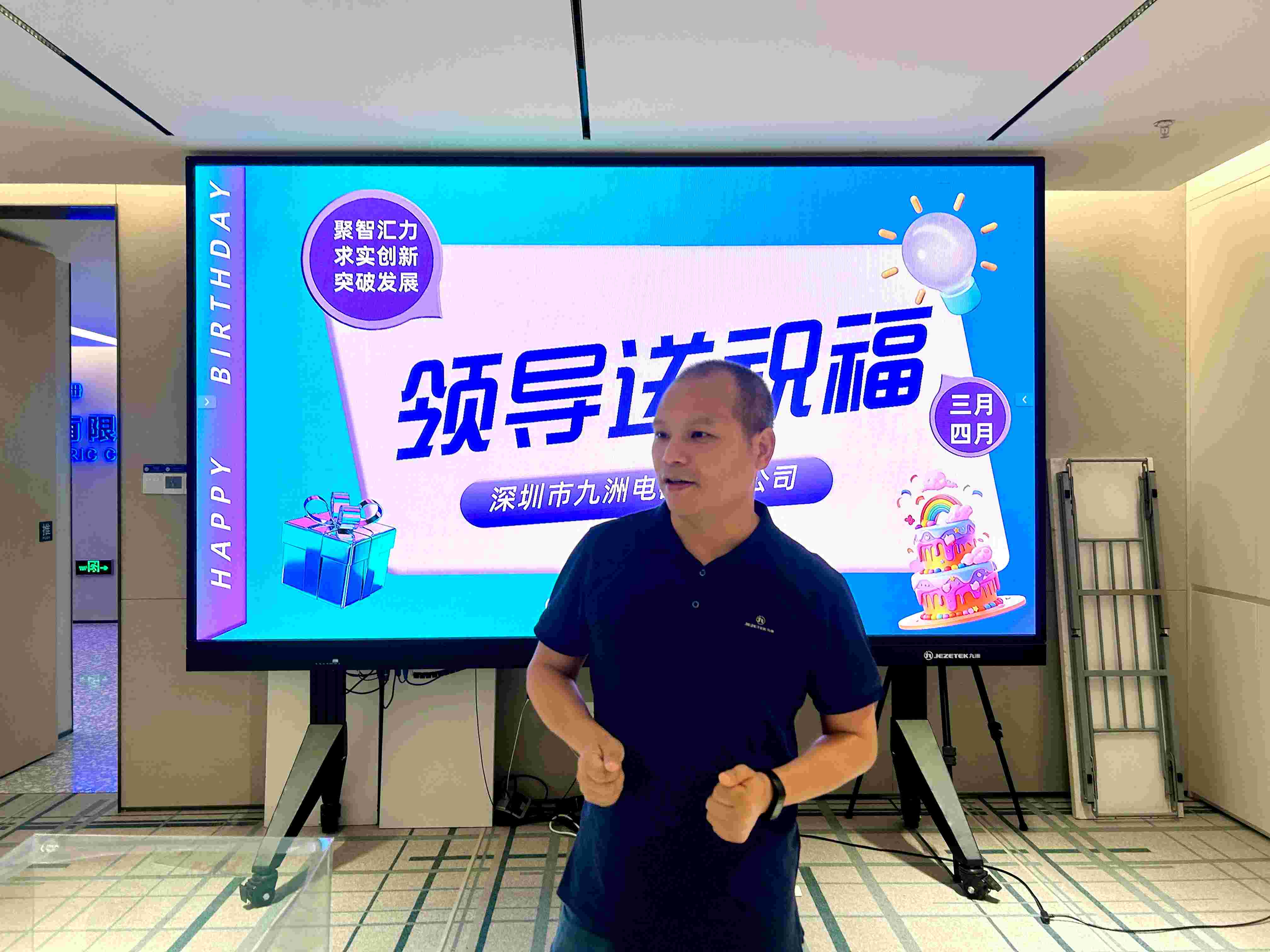 生日會(huì)一開始公司數(shù)字產(chǎn)品線副總經(jīng)理陳浩送上祝福,在白板上寫下“boost”這個(gè)單詞,并寄語到:在公司硬件、軟件、結(jié)構(gòu)等各個(gè)層面我們都能接觸到“boost”這個(gè)詞,“boost”本身含義有推動(dòng)、促進(jìn)、增長的意思,也是操作系統(tǒng)、網(wǎng)絡(luò)層、文件系統(tǒng)層的標(biāo)準(zhǔn)庫,還代表結(jié)構(gòu)材料里的新技術(shù),希望在這個(gè)萬物生長的春天,深圳九洲電器可以“boost”,希望公司的科技創(chuàng)新可以“boost”,希望每一位深九家人都可以boost!